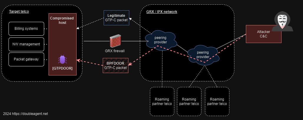 GTPDOOR is a Linux malware targeting telecom networks that uses “magic” packets (GTP-C echo requests) to wake up infected systems, receive commands, execute them, and send results back.